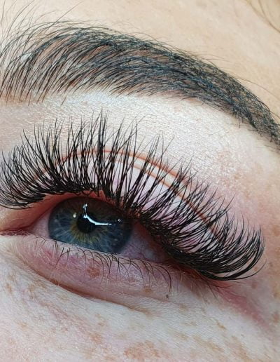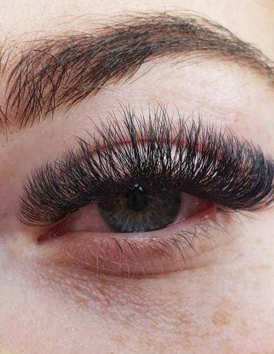 Russian lashes are ultra-fine synthetic lashes that are made from the same soft fibre as classic lashes. They are much thinner than classic lashes and the therapist can apply more lashes to each natural lash – anything between 2D-8D. Russian lash extensions are applied in a fan-like shape, which gives more volume fluffy look.